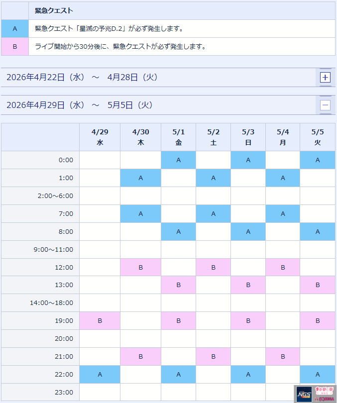 PSO2NGSで、4月29日のアプデ内容と終わるものまとめ。 概要 定期メンテ無し ACスクでは人気アイテムを再配信 SGスクではプリセット強化に便利なアイテムを再配信 期間限定クエスト「想定演習:焔獄の疾駆戦」(1人)…