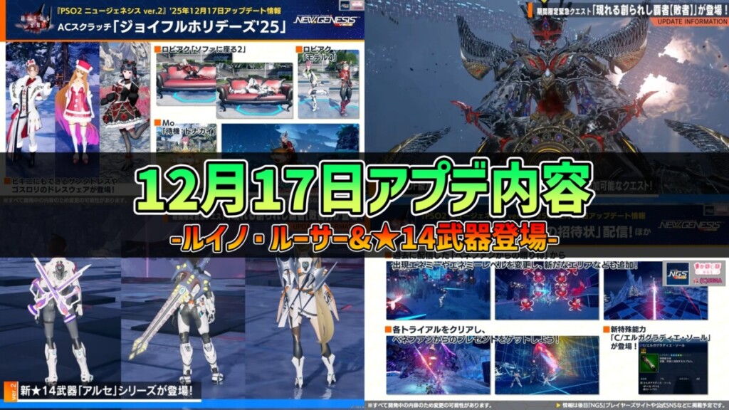 【PSO2NGS】2025年12月17日アプデ内容 -ルイノ・ルーサー&★14武器登場-