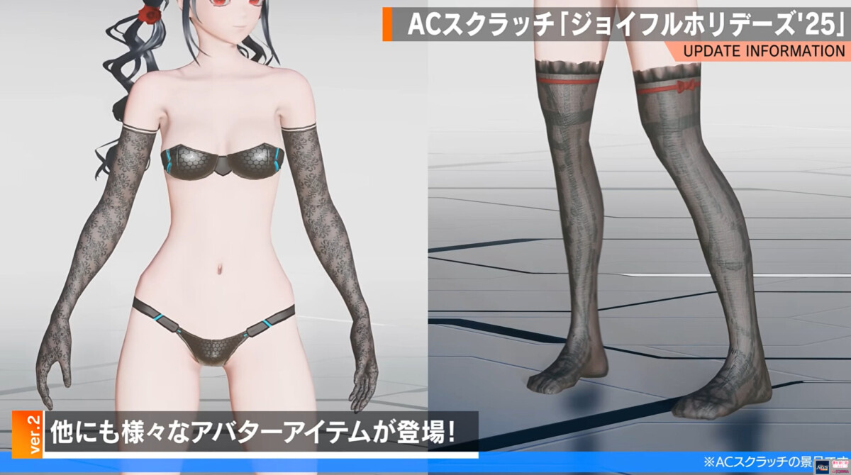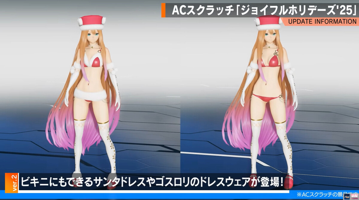- ACスクでは、ビキニにもなるサンタドレスやゴスロリ衣装が登場
