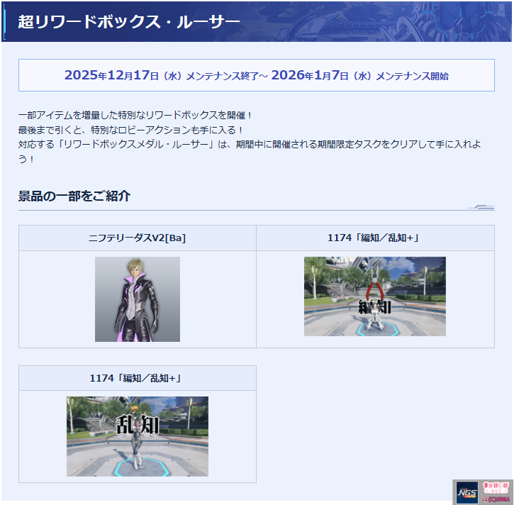 PSO2NGSで、12月17日のアップデート内容と終わるものまとめ。