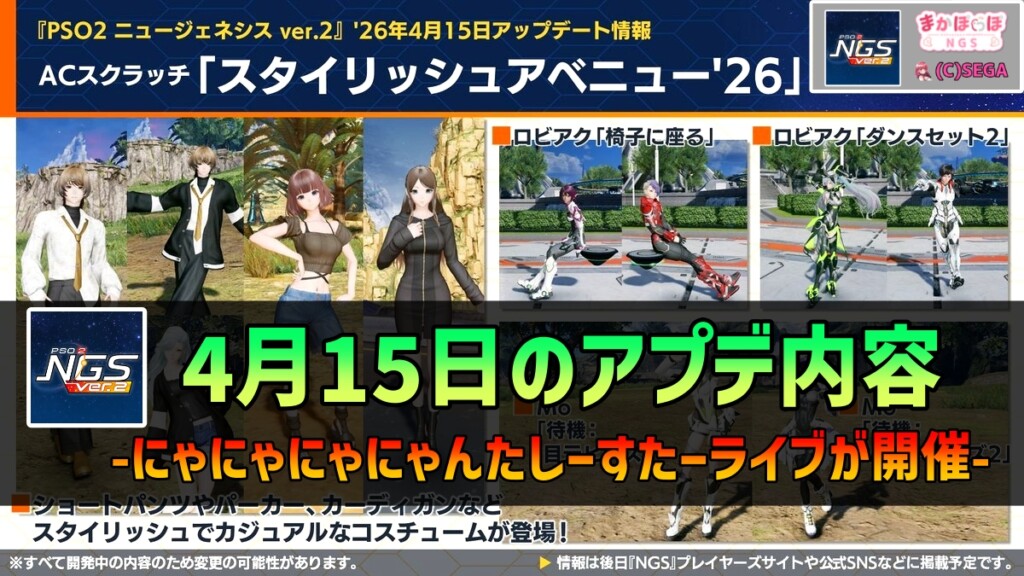 【PSO2NGS】4月15日のアプデ内容 -にゃにゃにゃにゃんたしーすたーライブが開催-
