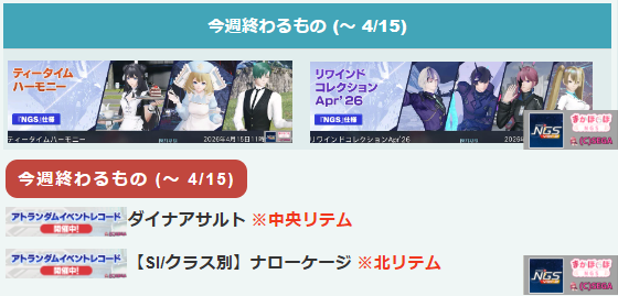 PSO2NGSで、4月15日のアプデ内容と終わるものまとめ。