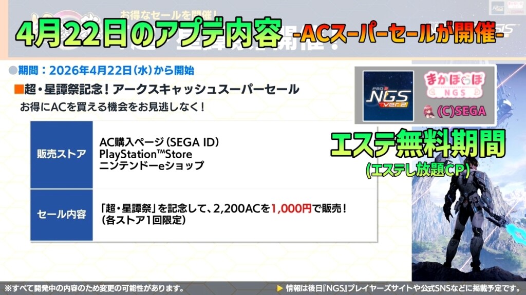 【PSO2NGS】4月22日のアプデ内容 -ACスーパーセールが開催-