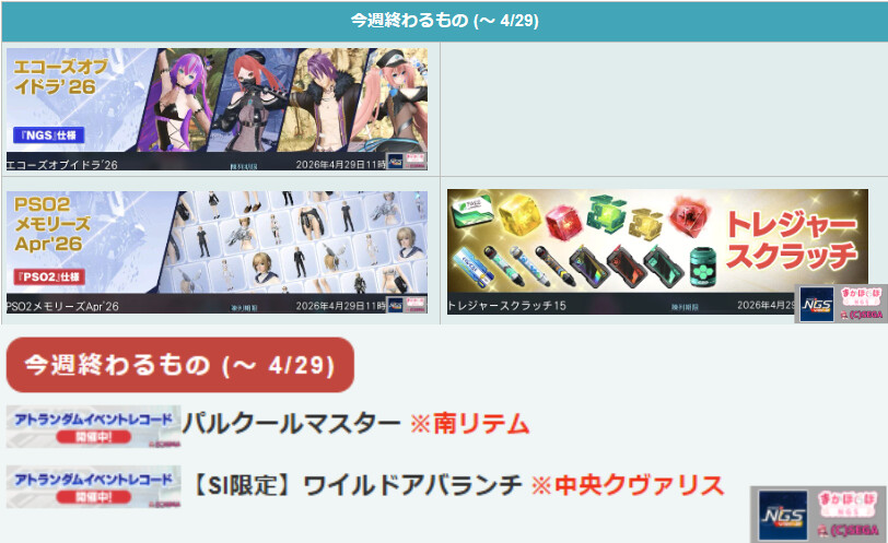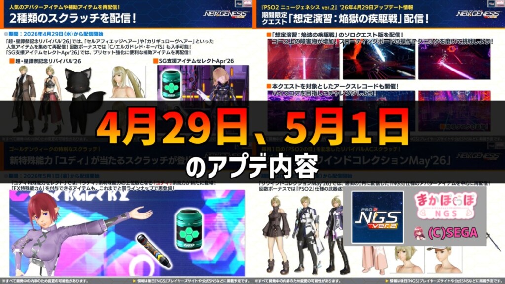 PSO2NGSで、4月29日のアプデ内容と終わるものまとめ。