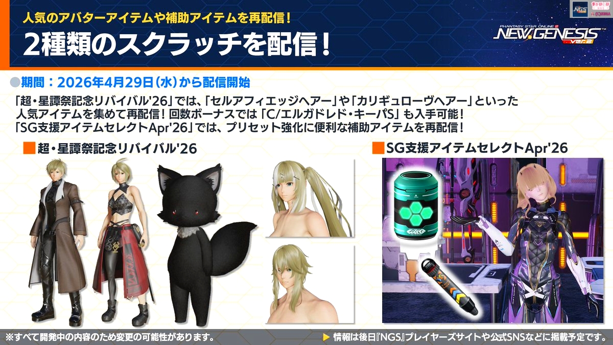 復刻スクラッチ「超・星譚祭記念リバイバル’26」&「SG支援アイテムセレクトApr’26」