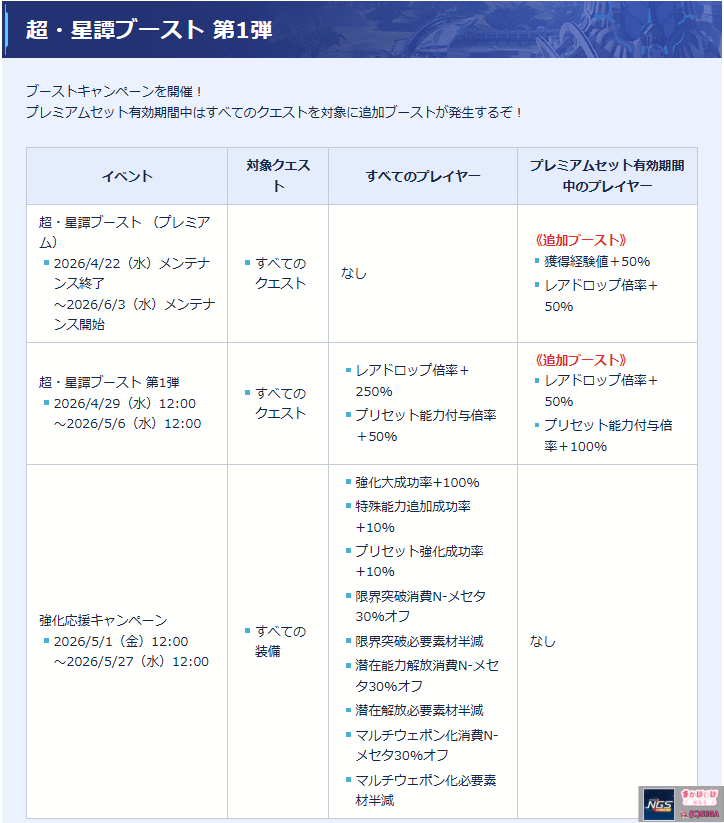 【PSO2NGS】4月29日、5月1日のアプデ内容 -レアブ期間、強化期間開催-