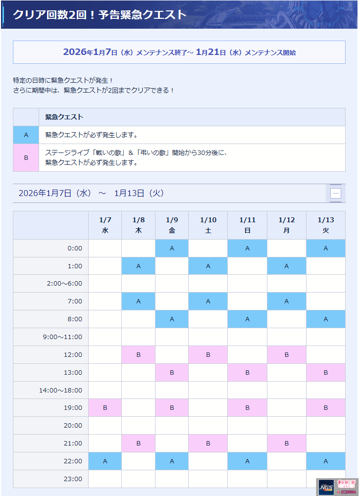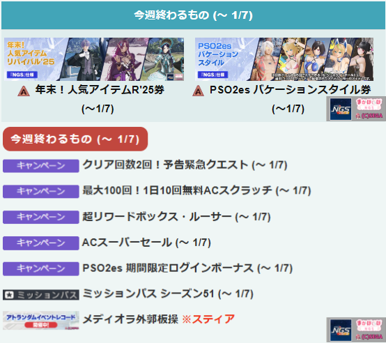 PSO2NGSで、1月7日のアプデ内容と終わるものまとめ。